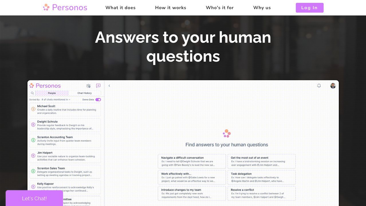 Personos uses AI to simplify team communication and boost productivity. It does this by delivering real-time insights into team dynamics, automating routine tasks, and offering tailored recommendations to enhance collaboration. These tools help cut down on misunderstandings, save valuable time, and keep everyone aligned.